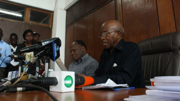 | Mwenyekiti wa tume ya uchaguzi Tanzania,Jaji mtaafu Damian Lubuva akitoa tamko. |